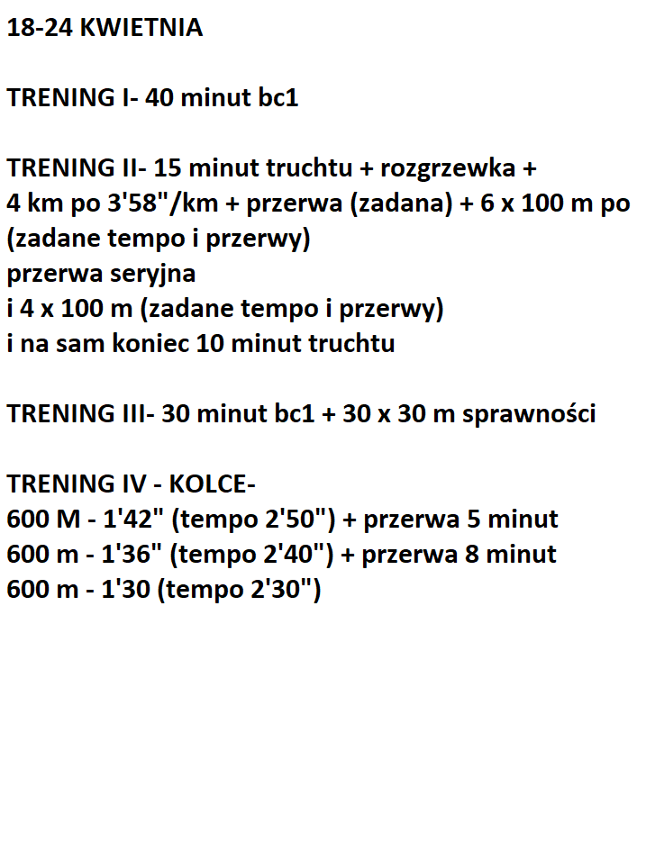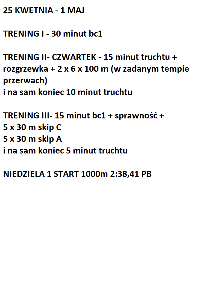 Jesteś ciekawy jak wyglądał plan na 3 tyg. przed startem na wynik 2:38,41 na 1000m?