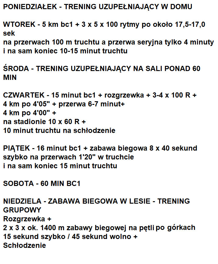 Chciałbym Wam pokazać plan treningowy Szymona z 30 stycznia - 5 lutego