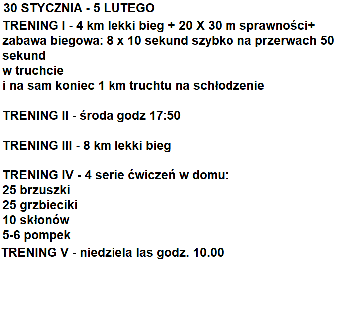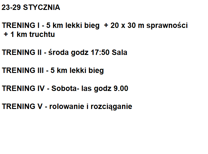 Poniższy plan treningowy jest dopasowany do indywidualnych predyspozycji zawdonika, oraz uwzględnia pracę i inne warunki, które mają wpływ na trening oraz wyniki.