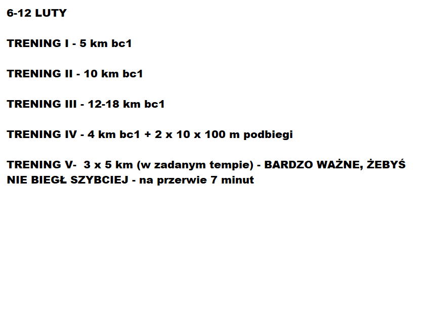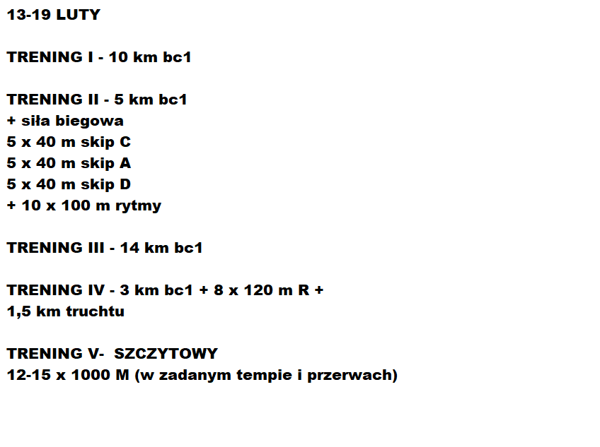 Przemek odpalił bombę już na początku sezonu 2023! Wystartował w 43. Półmaratonie Wiązowskim uzyskując rewelacyjny wynik 1:19:58! Poprawił swoj rekord życiowy na tym dystansie o ponad 3 minuty. W mojej ocenie Przemek ma jeszcze duże możliwości w treningu, ale spokojnie dojdziemy do wyników, tylko doza cierpliwości i sytematyczności u Przemka zrobi mega robotę. Chciałbym Wam pokazać jego plan treningowy na dwa tygodnie przed rekordowym startem z 6-19 lutego.