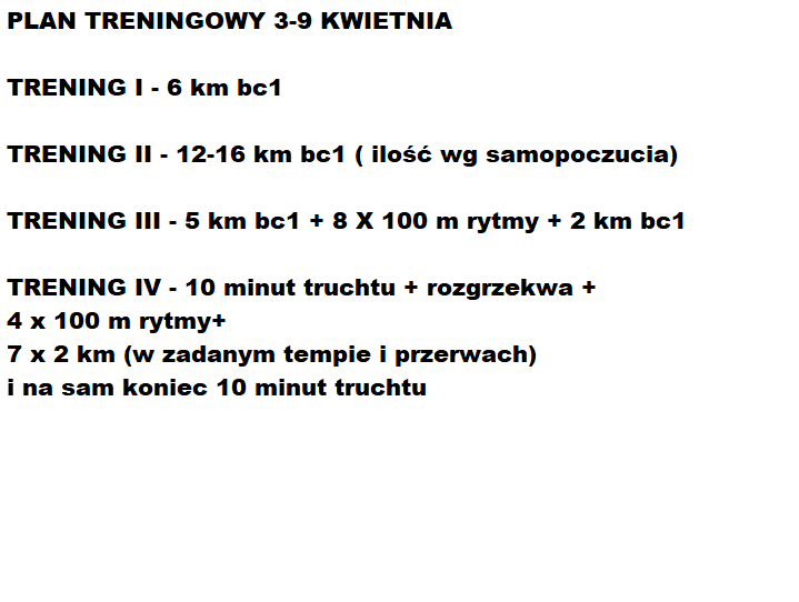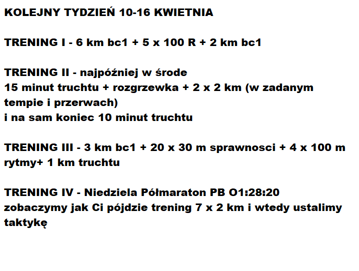 Chciałbym Wam pokazać plan treningowy Kuby z 3-16 kwietnia.
