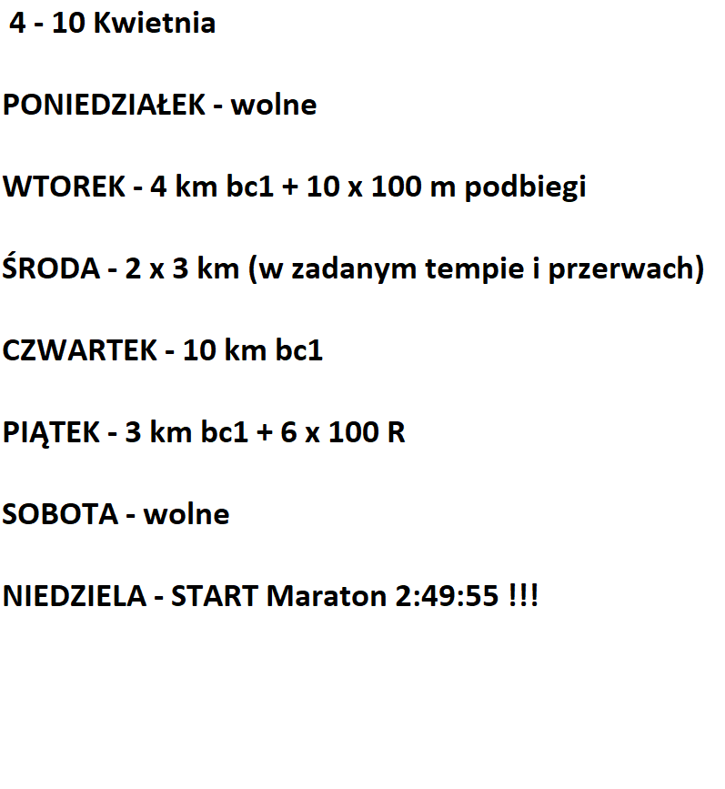 Jesteś ciekawy jak wyglądał plan na 2 tyg. przed startem na wynik 2:49:55 w Maratonie?