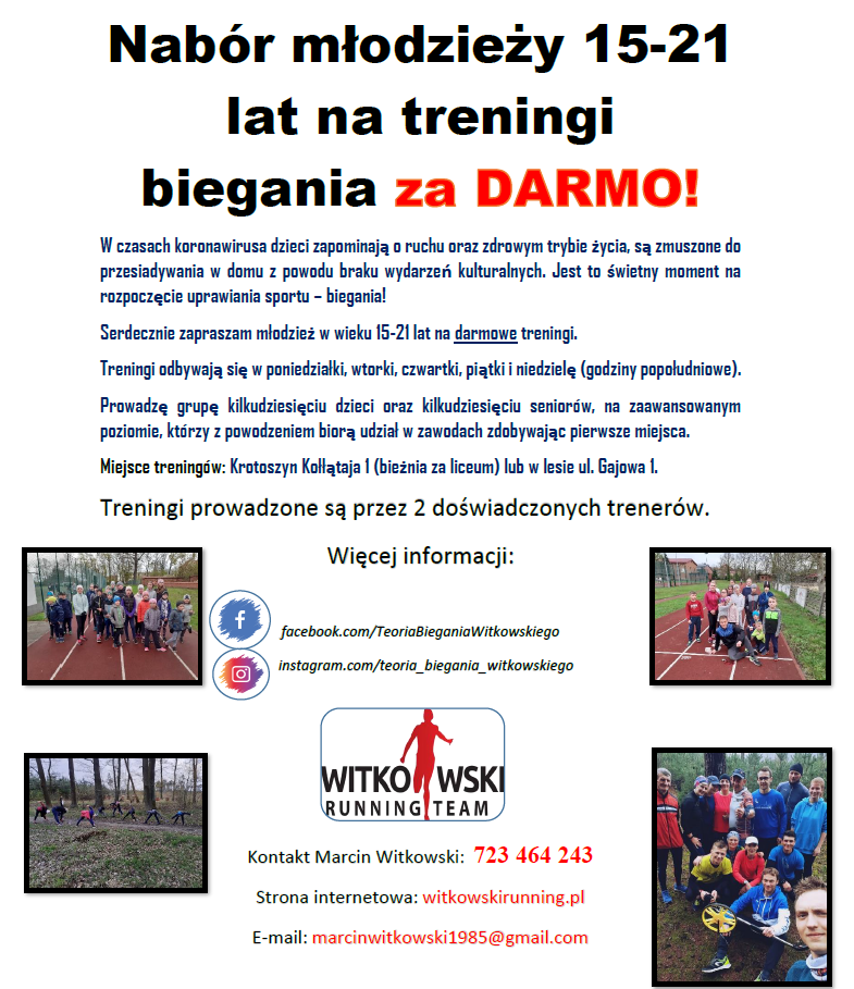 Nabór młodzieży 15-21 lat na treningi biegania za DARMO!