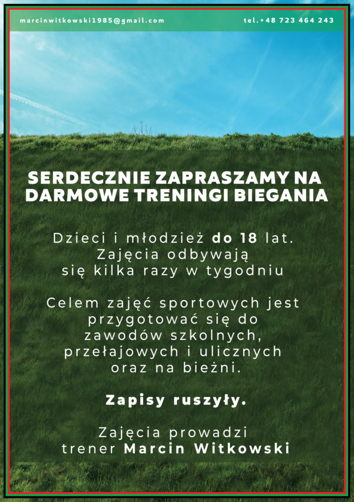 Kontakt: 723 464 243 lub marcinwitkowski1985@gmail.com