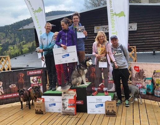 Moi zawodnicy na podium w biegu dog trekking ![]()