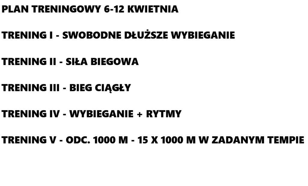 Poniższy plan treningowy jest dopasowany do indywidualnych predyspozycji zawodnika, oraz uwzględnia pracę i inne warunki, które mają wpływ na trening oraz wyniki.