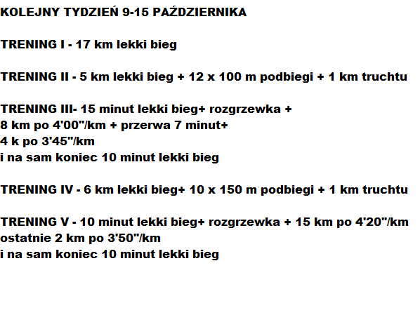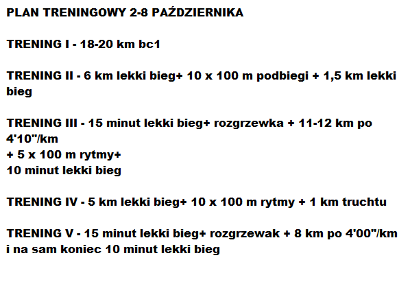 Chciałbym Wam pokazać plan treningowy Piotrka od 2 do 15 października.