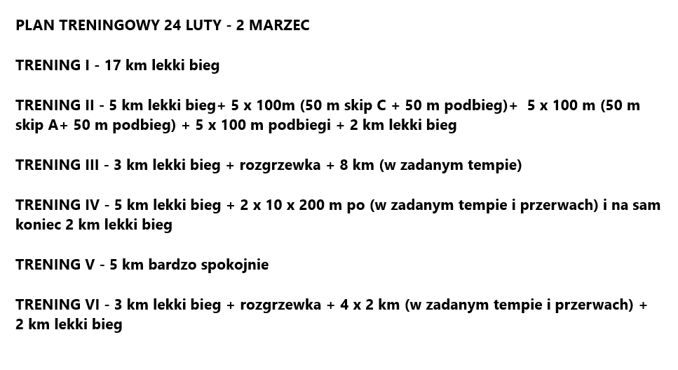 Chciałbym Wam pokazać dwa tygodnie z planu treningowego zawodnika od 24 lutego do 9 marca.