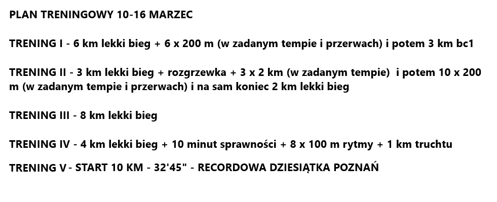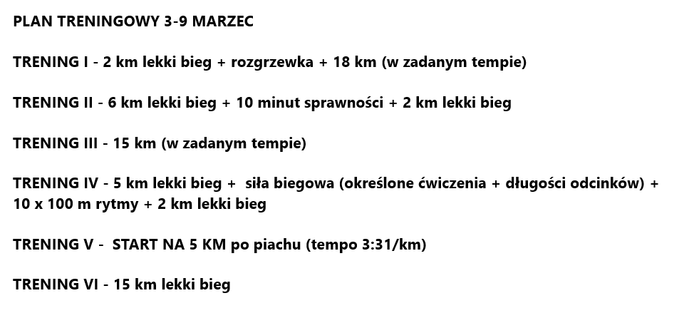 Chciałbym Wam pokazać dwa tygodnie z planu treningowego przed startem zawodnika od 3 do 16 marca.
