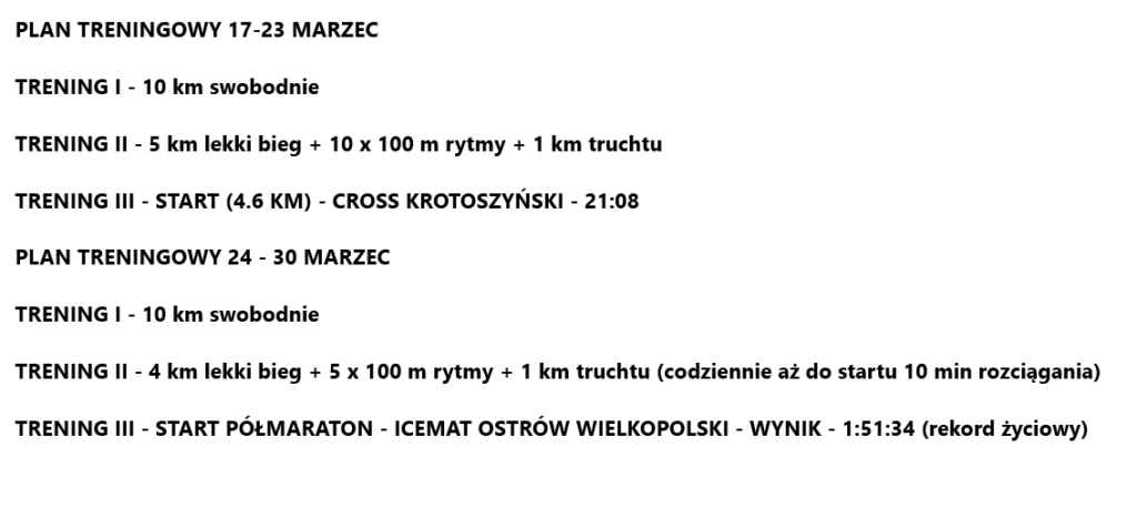 Plan treningowy - Rekord życiowy Damiana (50 lat) w ICEMAT Półmaraton Ostrów Wielkopolski