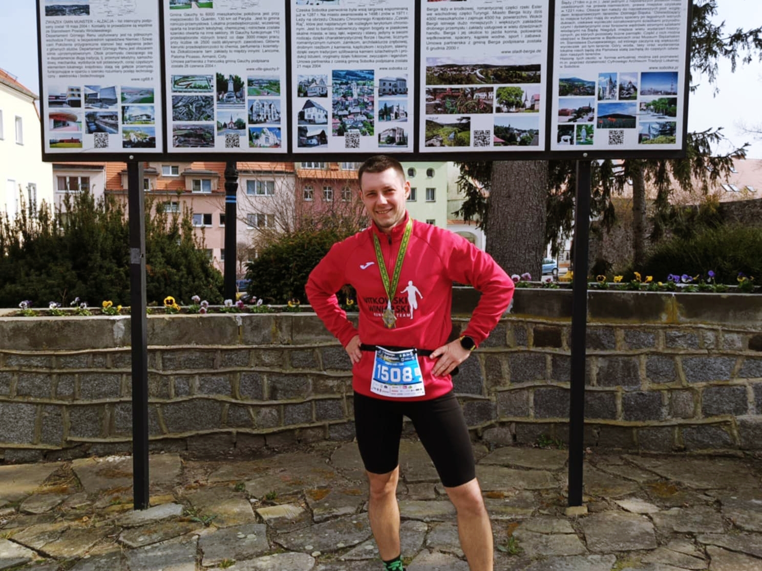 Mój podopieczny Dominik wystartował w Półmaratonie Ślężańskim. Na trudnej trasie uzyskał nowy rekord życiowy - 1:42:06. Po płaskim terenie, w normalnych warunkach rekord byłby znacząco poprawiony, lecz ten start był dla Dominika dużym priorytetem z racji zamiłowania do górskich biegów i tutaj rekord życiowy można powiedzieć, że padł przy okazji.