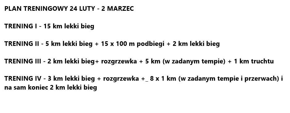 Chciałbym Wam pokazać dwa tygodnie z planu treningowego zawodnika od 24 lutego do 9 marca.