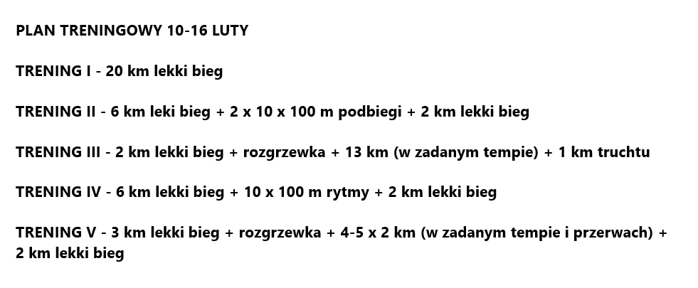 Chciałbym Wam pokazać dwa tygodnie z planu treningowego zawodnika od 10 do 23 lutego.