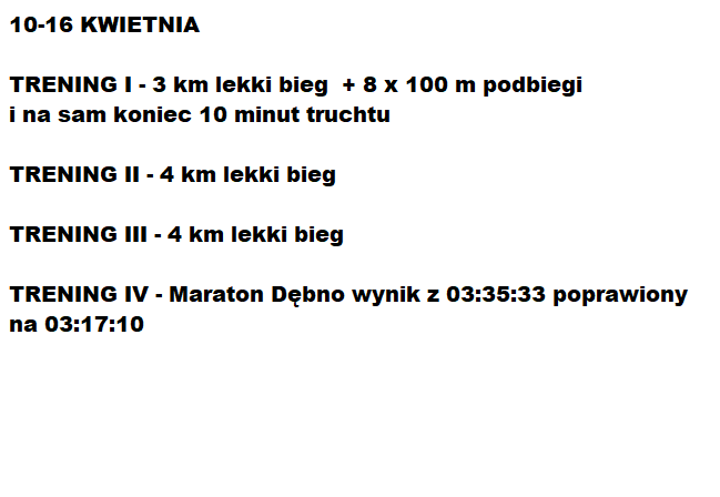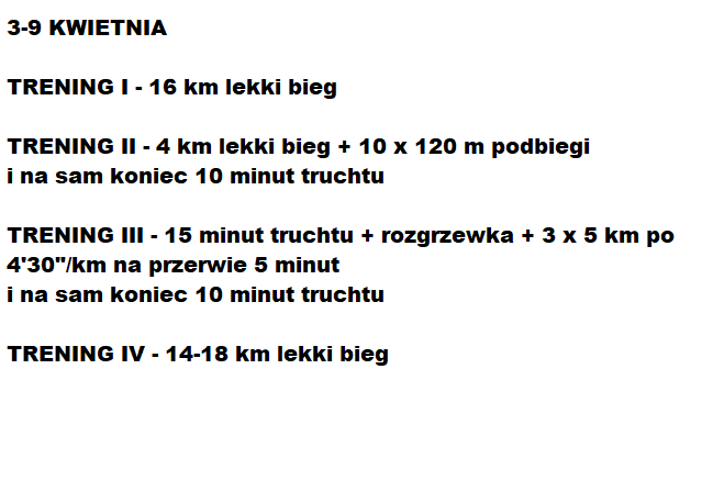 Chciałbym Wam pokazać dwa tygodnie z planu treningowego przed startem Marcina 3-16 kwiecień, badajcie 🙂