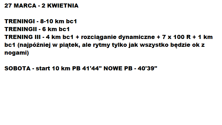 Przedstawiam plan od 27 marca do 16 kwietnia.
