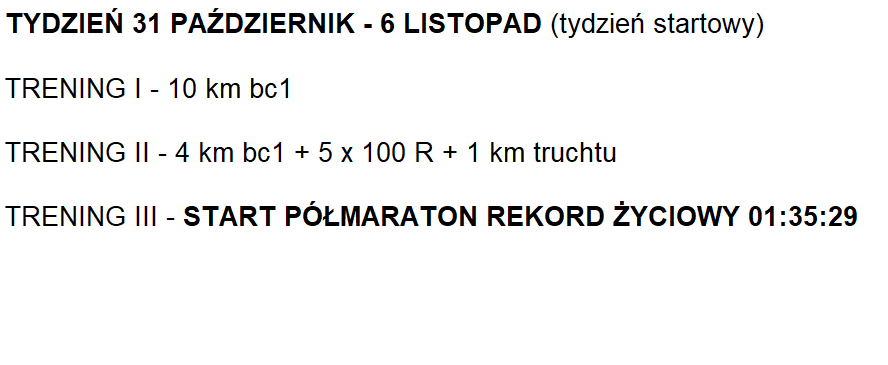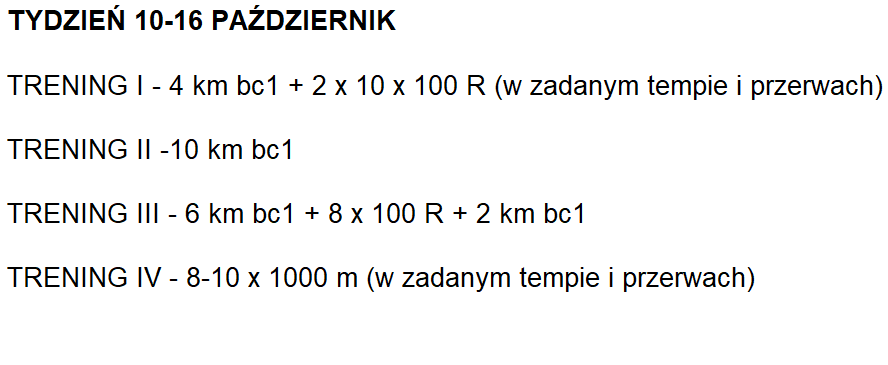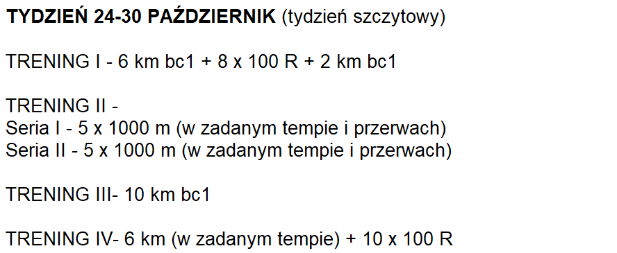 Chciałbym Wam pokazać plan treningowy, który Mateusz realizował na 4 tygodnie przed rekordowym startem.