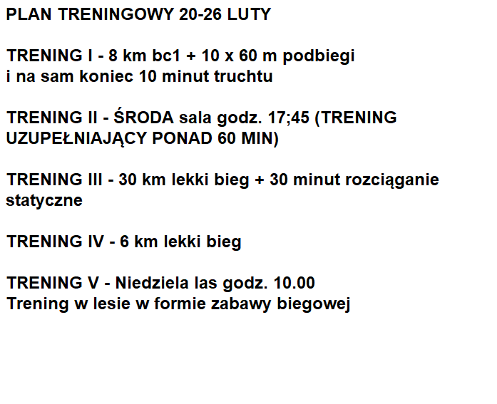Chciałbym Wam pokazać dwa tygodnie z planu treningowego zawodnika od 20 lutego do 5 marca.