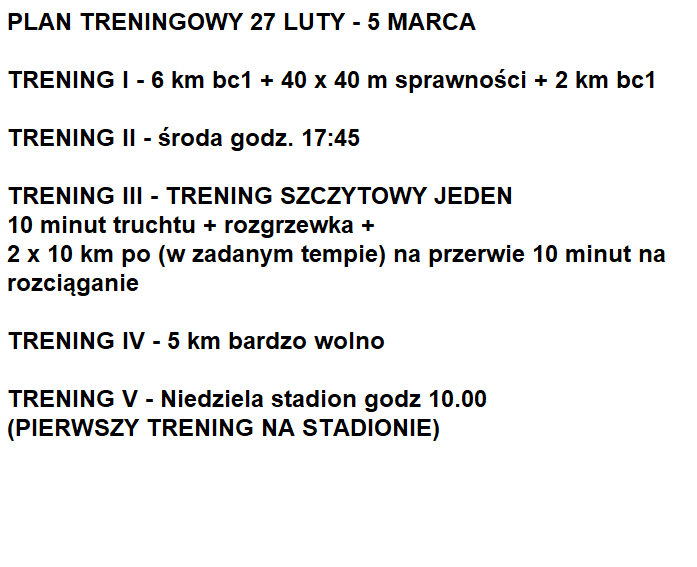 Udostępnionym planem nie należy się sugerować i przekładać go na siebie! Plan treningowy jest przygotowany uwzględniając predyspozyje, pracę oraz inne warunki, które mają wpływ na trening!