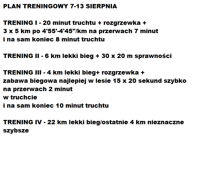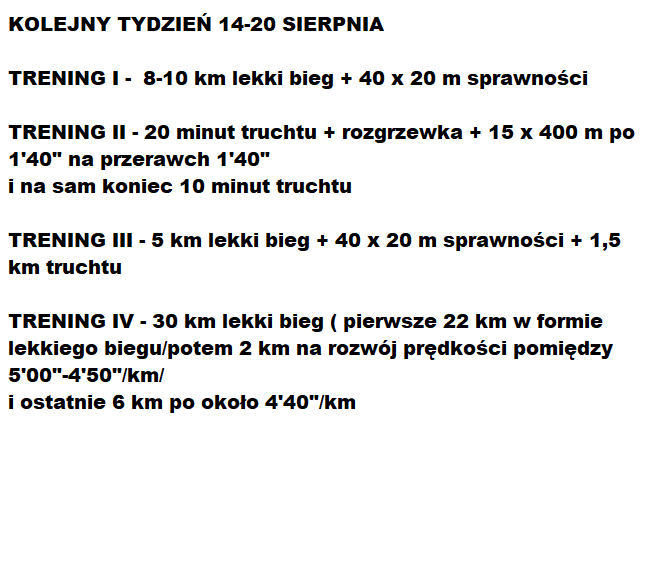 Chciałym Wam pokazać dwa tygodnie z planu treningowego Sławka od 7 sierpnia do 20 sierpnia.
