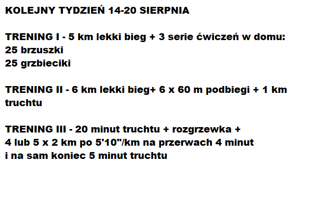 Chciałbym Wam pokazać jak trenuje podopieczny od 7 sierpnia do 20 sierpnia.