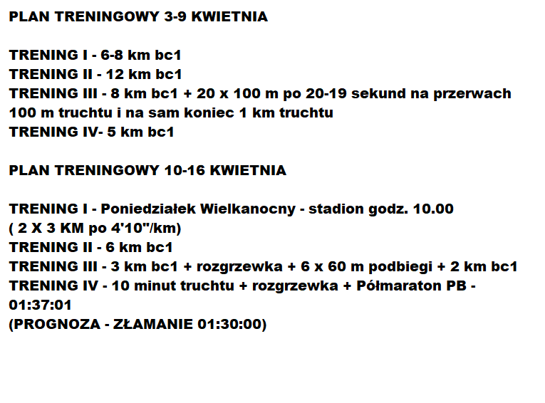 Chciałbym Wam pokazać obecny plan treningowy zawodnika od 3 do 16 kwietnia.