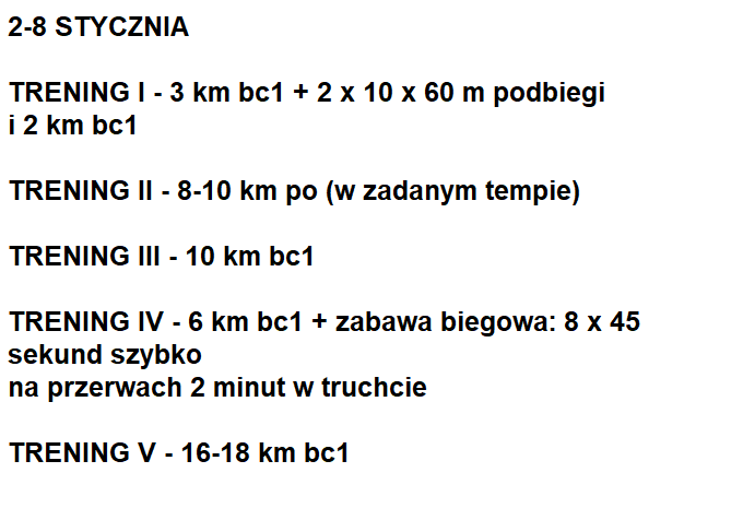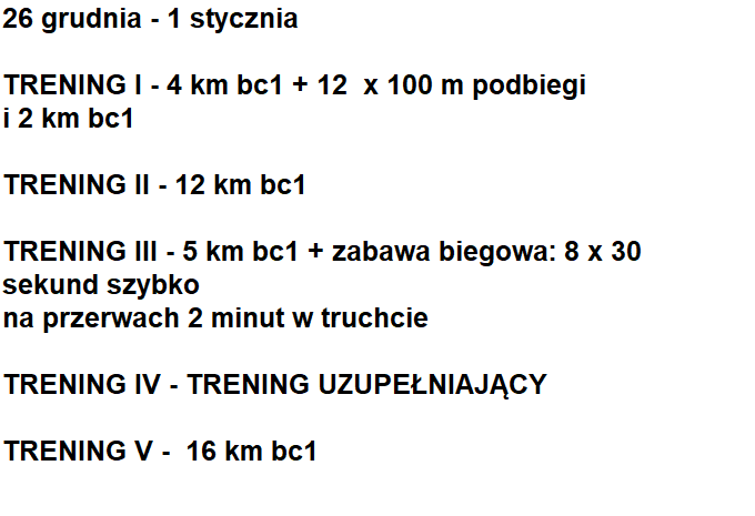 Chciałbym Wam pokazać jak obecnie trenuje zawodnik (plan z dwóch tygodni 26 grudnia - 8 stycznia).
