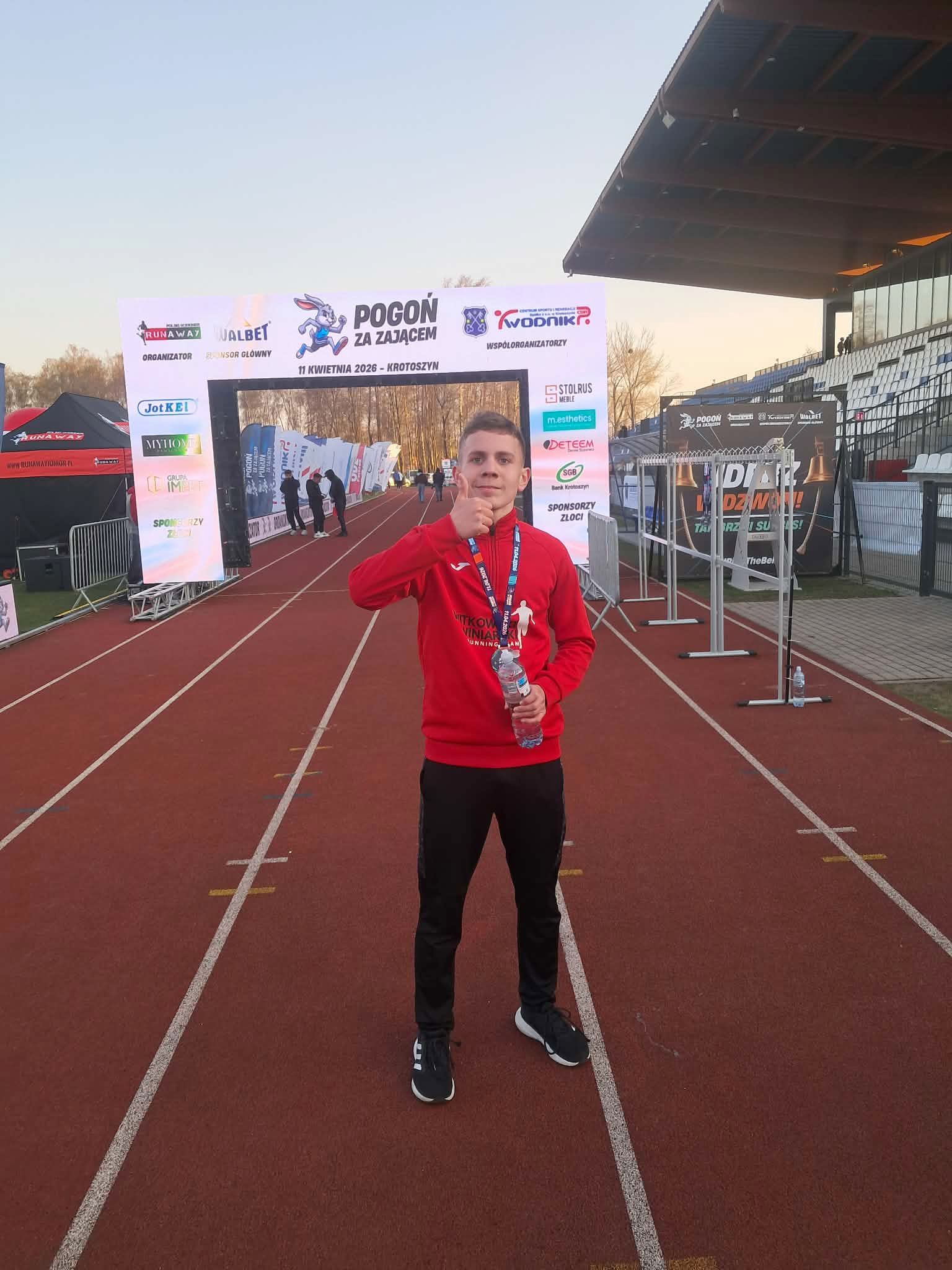 Nasz zawodnik Aleksander wygrywa 🏆 bieg Nocna Pogoń za Zającem w Krotoszynie na dystansie 1200 m.